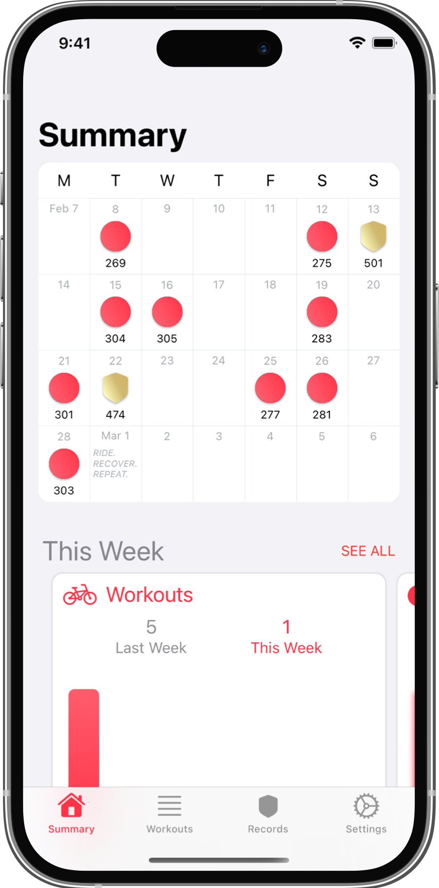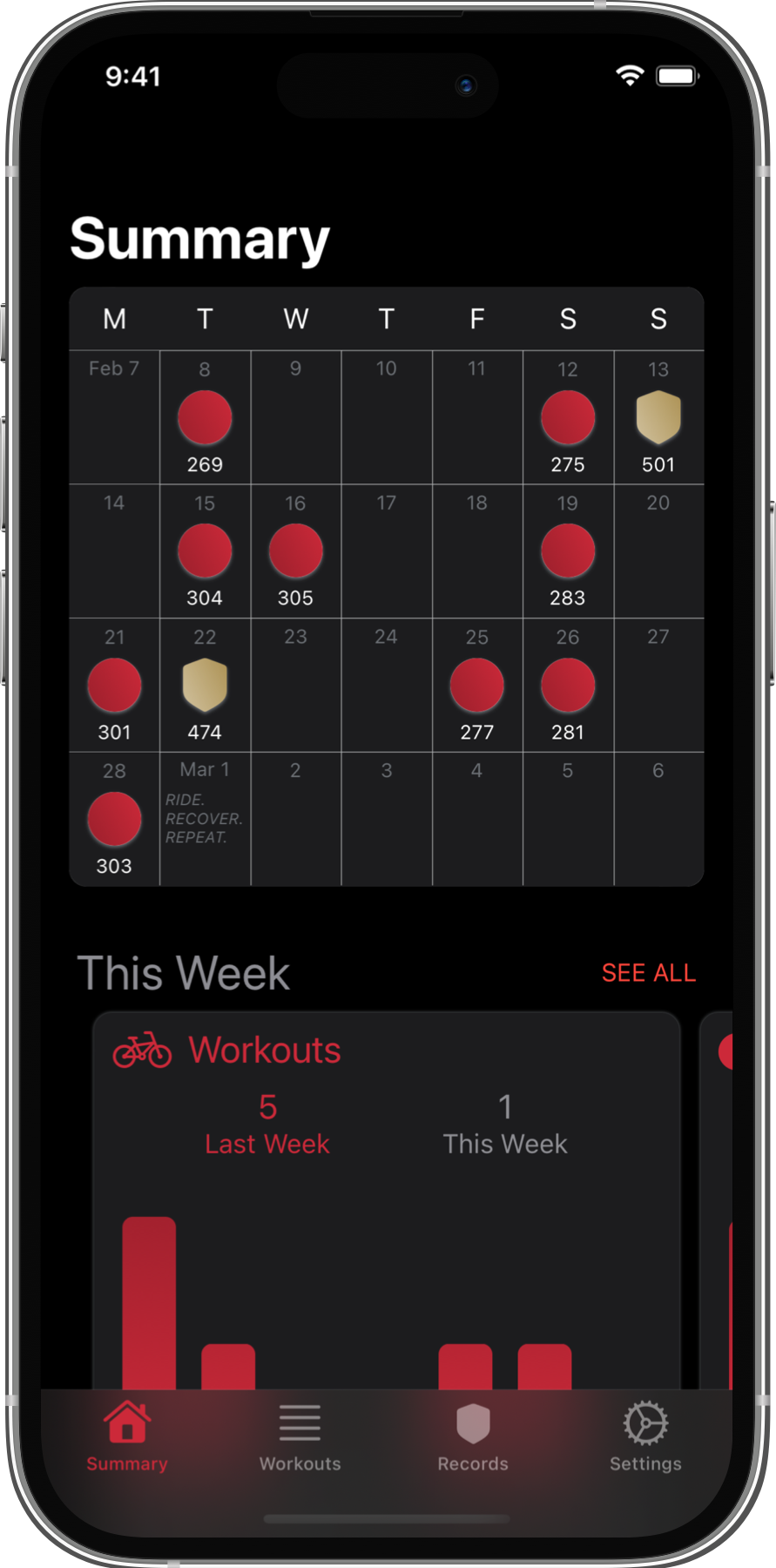 Coming Soon - Set one time and recurring goals for workouts, output, and distance.