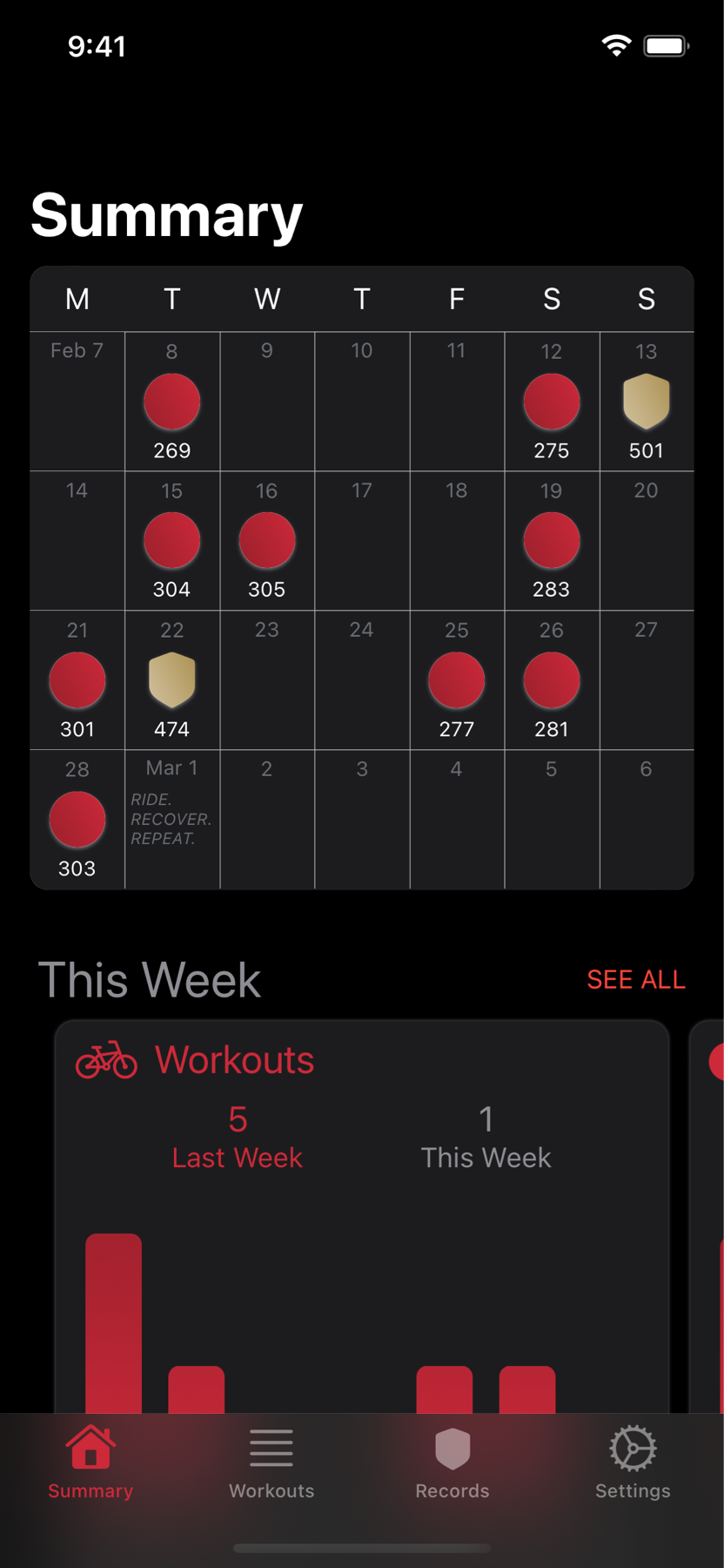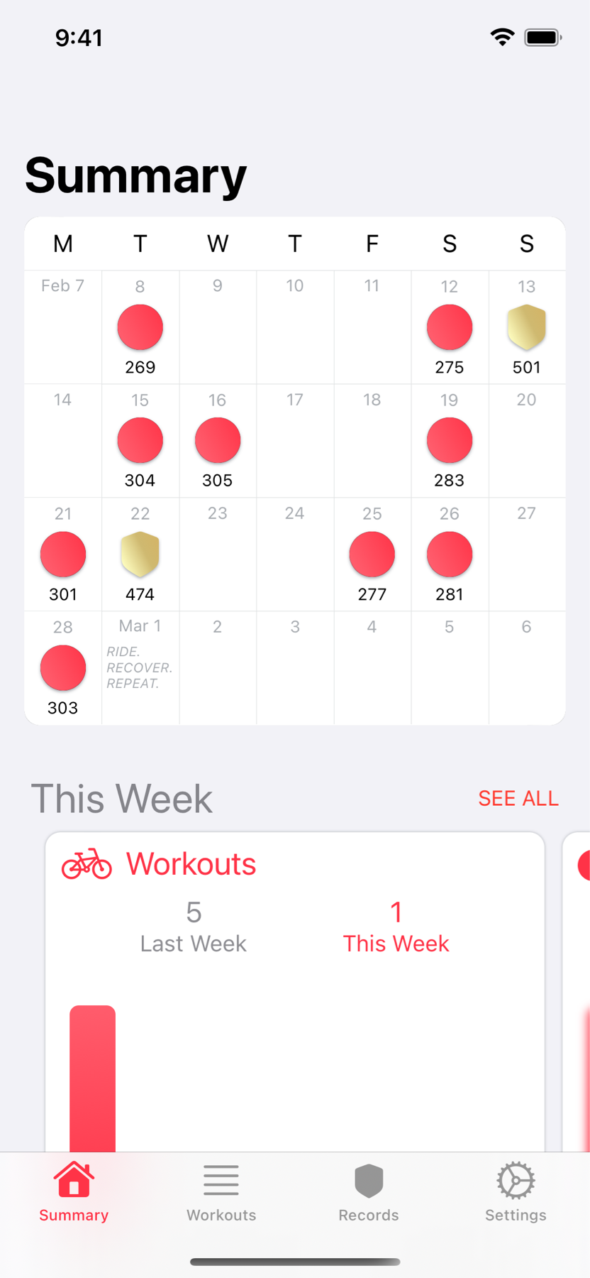 Coming Soon - Set one time and recurring goals for workouts, output, and distance.